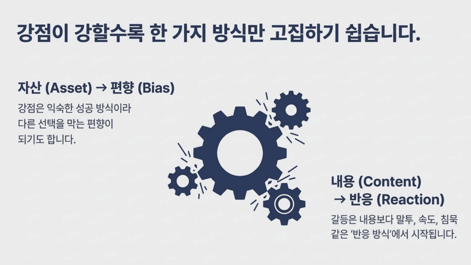 그래서 강점은 ‘자산’이 되기도 하지만, ‘편향’이 되기도 합니다.