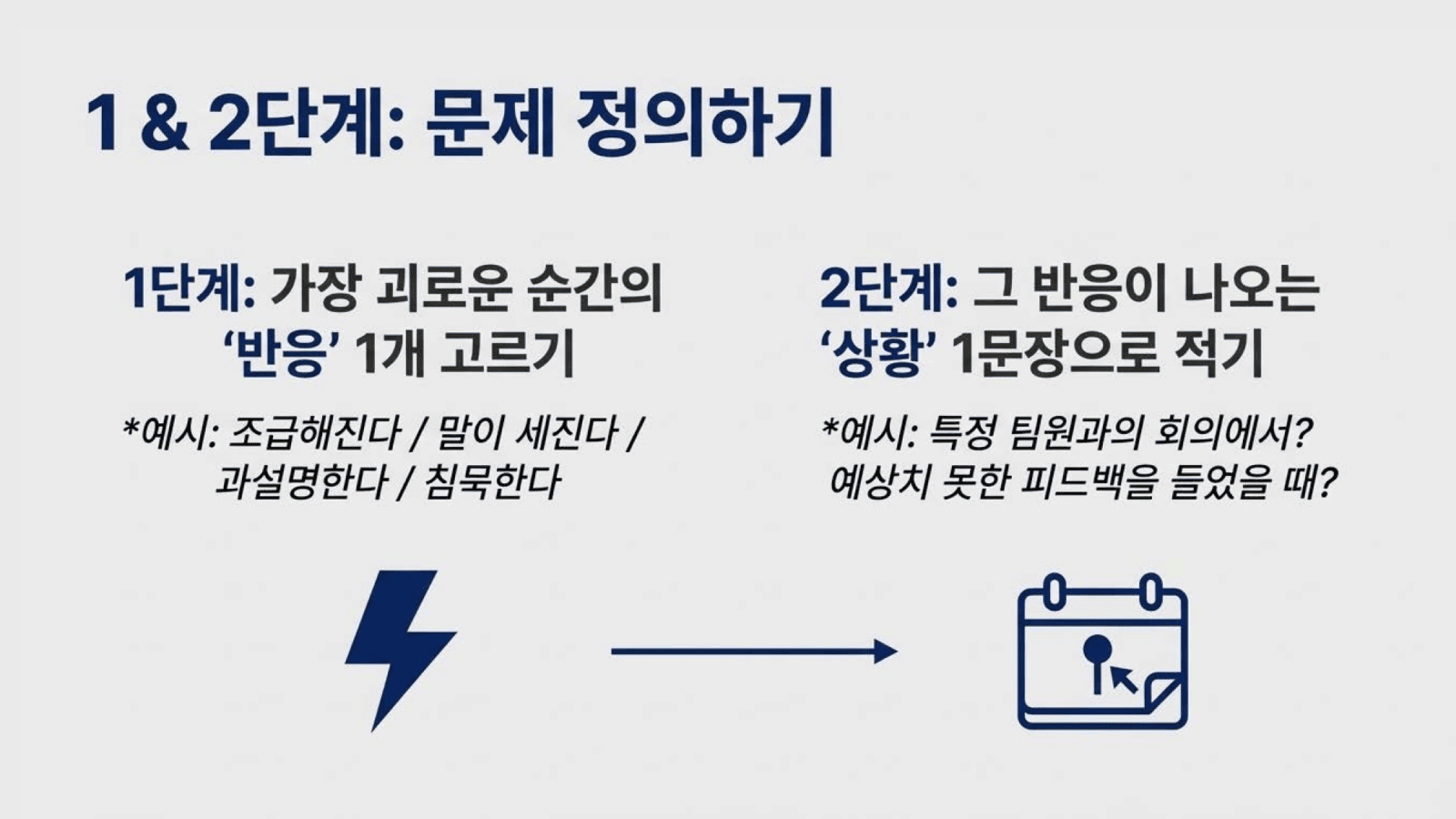 2단계: 그 반응이 나오는 ‘상황’을 한 문장으로 적기
