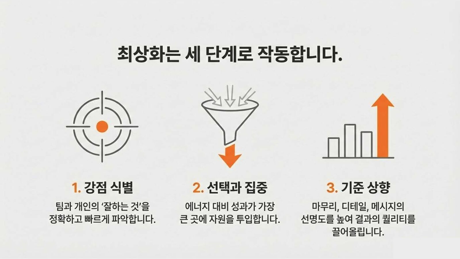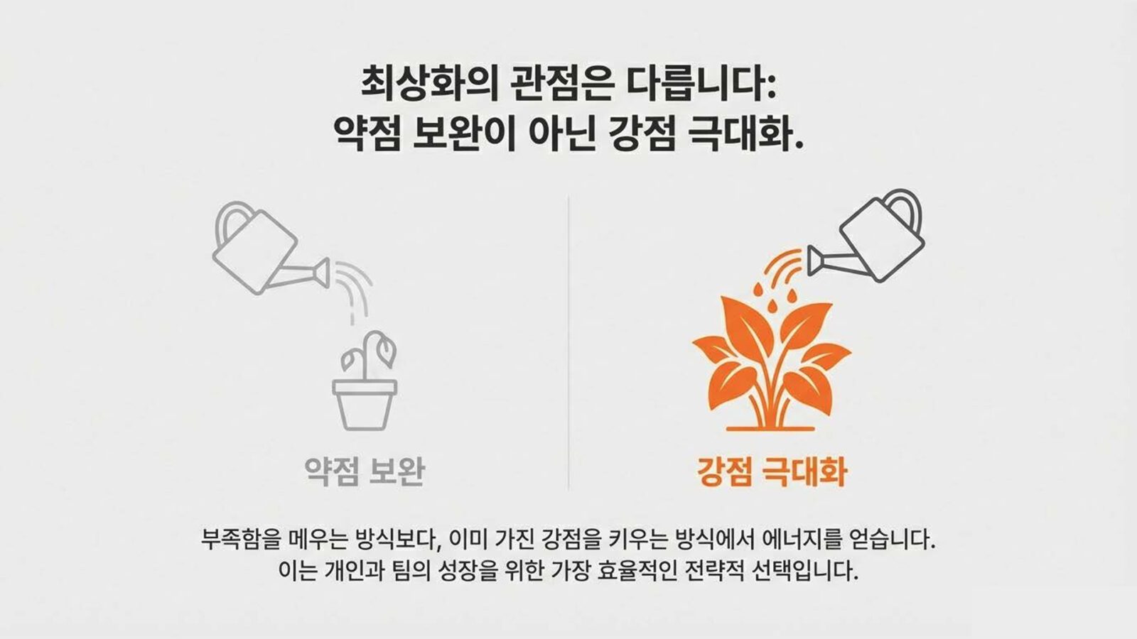 5. 최상화는 완벽주의가 아니라, 강점을 기반으로 성과를 극대화하는 선택입니다.