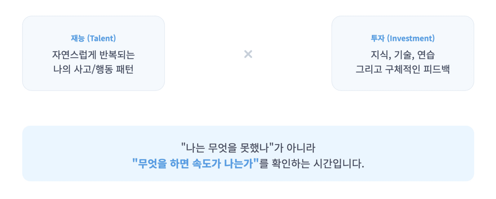 • 강점(Strength): 재능 × 투자 = 꾸준히 좋은 결과